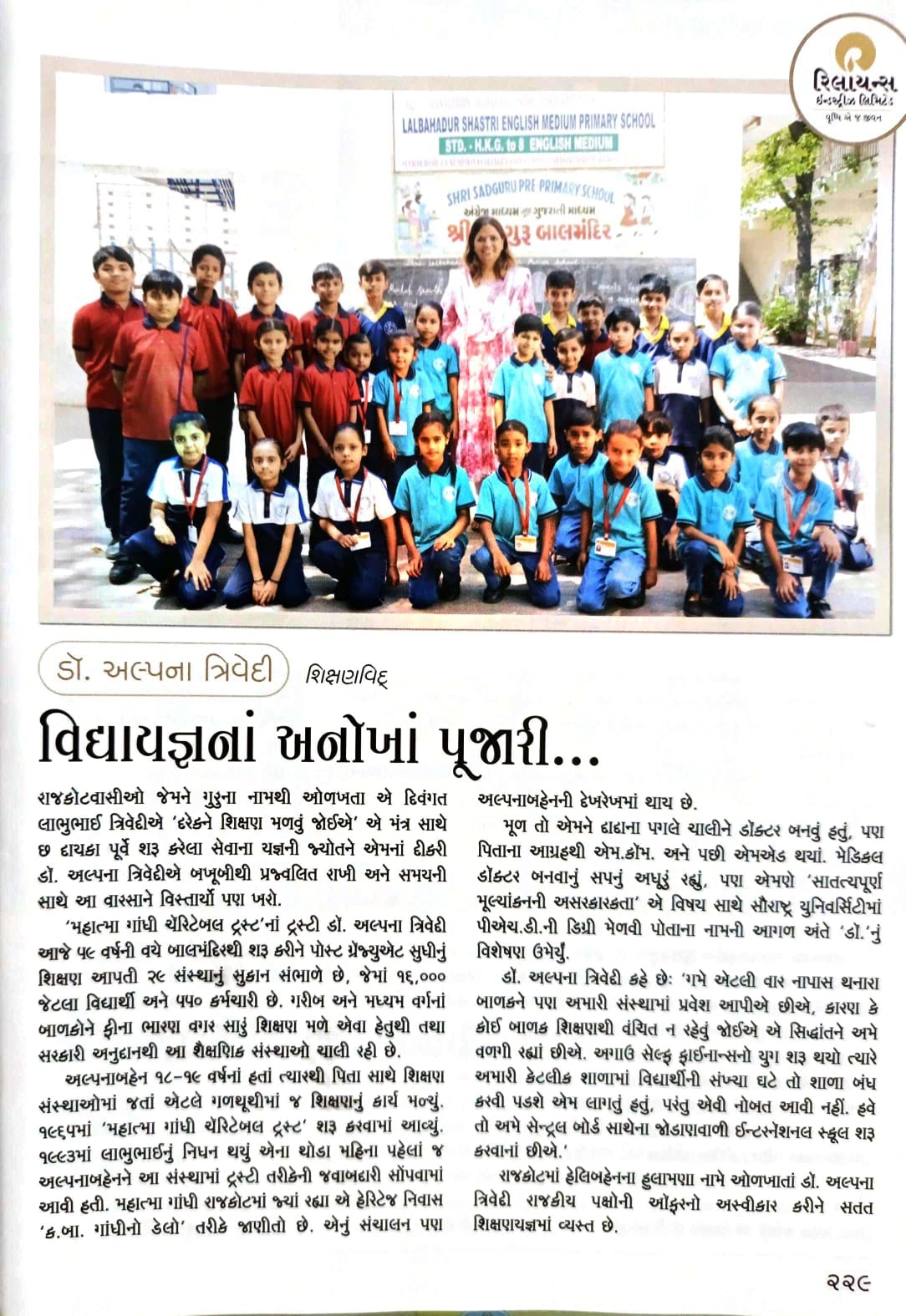 An eminent educationist with vision, he dedicated his entire life for the development and management of education. He was the pillar and the main guiding force behind many social, cultural, and educational institutions in Saurashtra. He was the key figure behind the modest beginning of the Mahatma Gandhi Charitable Trust.
